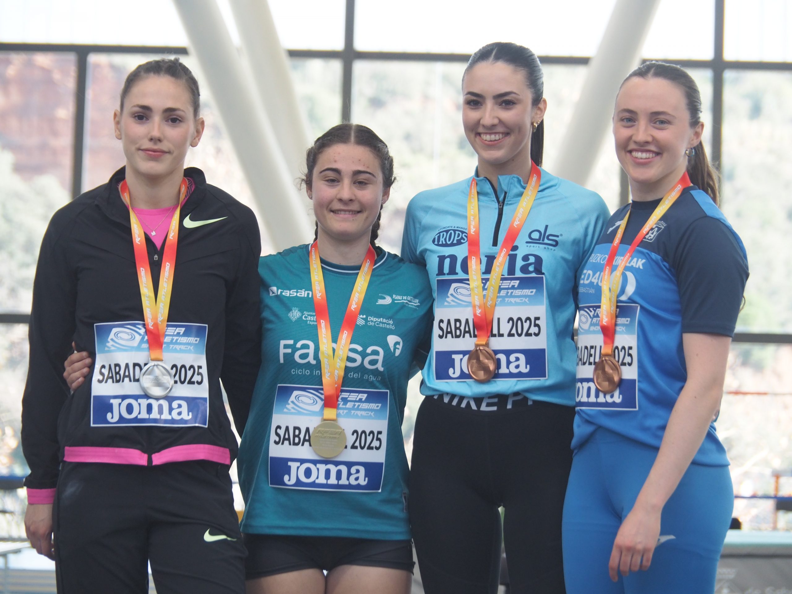 També s’han aconseguit cinc bronzes. El primer va ser el de Nerea Pérez, que va pujar al podi de perxa ex aequo, amb una marca de 3.85 m. També dissabte, Roger Martínez aconseguia a casa seva el bronze als 60 mt, amb 7.99 a la final i 7.98 a les semifinals, i es va convertir en l’únic atleta de la JAS amb medalla. En els 3.000 masculins, Aleix Vives, en una lluita frec a frec amb els primers classificats, va acabar guanyant el bronze amb un temps de 8:09:98.