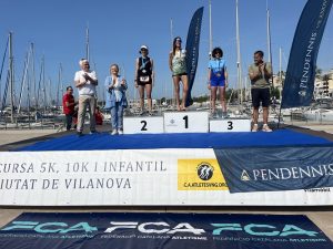 Un pel més igualada va estar la cursa femenina, però en tot cas, la guanyadora, Èlia Saura, es va distanciar ràpidament de les seves oponents. La barcelonina, ara entrenant a València, va trencar des de l’inici i va sumar marca personal amb 16:31, deixant enrere a les dues perseguidores. La plata va ser per la campiona de 2024, Najwa Chouati, que s’enduia el segon lloc amb 16:44. Un pèl per darrera arribava Anna Torras, del CA Igualada, que aconseguia el bronze amb 16:55.