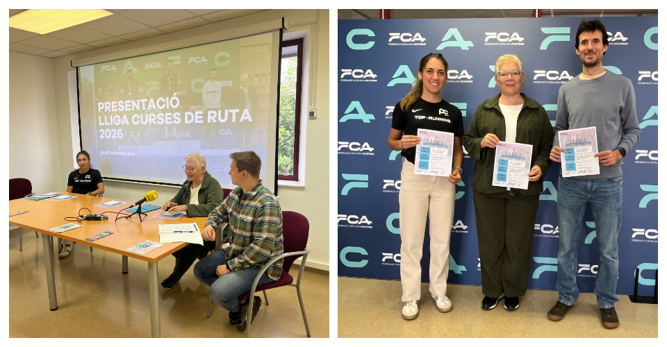 La Federació Catalana d’Atletisme ha presentat avui la nova lliga de curses de ruta per la temporada 2026, una lliga que engloba totes les curses federades del calendari català de 5 i 10 K i de mitja marató. La presentació ha tingut lloc a la sala d’actes de la FCA.